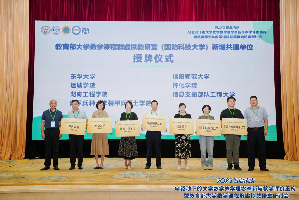 经前期申请,公司公共数学教研室正式成为教育部大学数学课程群虚拟教研室(牵头单位:国防科技大学)共建单位之一。授牌仪式于830日在西安交通大学与国防科技大学联合主办的“2025教育部大学数学课程群虚拟教研室工作研讨会”上举行。