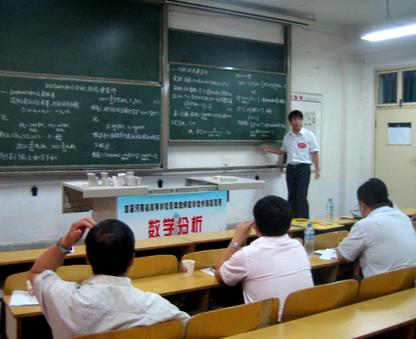首届河南省高校青年教师数学教学技能竞赛由河南省教育厅主办,分初赛、复赛和决赛三个阶段进行,历时3个多月。决赛评委由河南省数学教学指导委员会成员和部分本科高校数学学院经理组成。经过激烈角逐,最终三个课程组共评出一等奖13名、二等奖27名、三等奖39名、优秀奖26名。