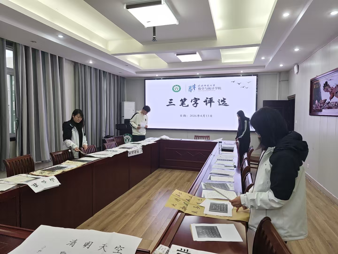 “三笔字”评选共收到41名研究生的钢笔、毛笔、粉笔字作品。经评审,共评出三等奖12名、二等奖8名、一等奖5名,一等奖作品将被推荐至学校参加校级评选。