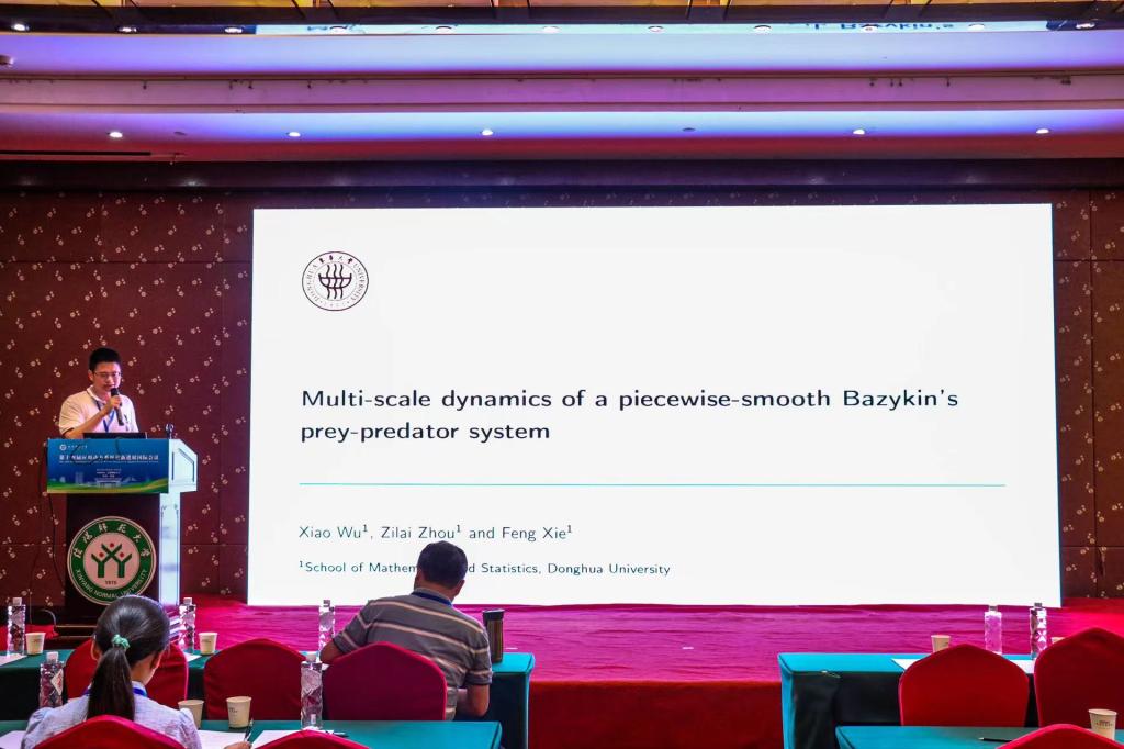 东华大学的吴潇,做了题目为《Multi-scale dynamics of a piecewise-smooth Bazykin's predator-prey system》的报告。