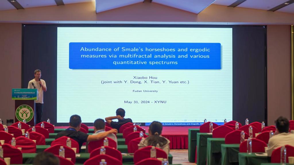 复旦大学的侯晓博,做了题目为《Abundance of Smale's horseshoes and ergodic measures via multifractal analysis and various quantitative spectrums》的报告。