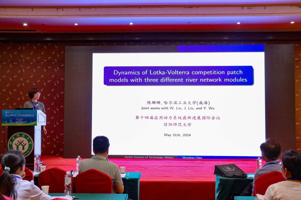 哈尔滨工业大学(威海)的陈珊珊,做了题目为《Dynamics of Lotka-Volterra competition patch models with three different river network modules》的报告。