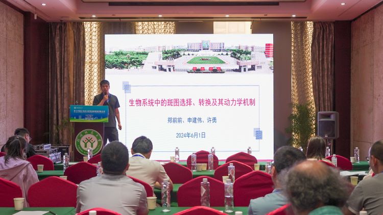 许昌学院的郑前前,做了题目为《生物系统中的斑图选择、转换及其动力学机制》。