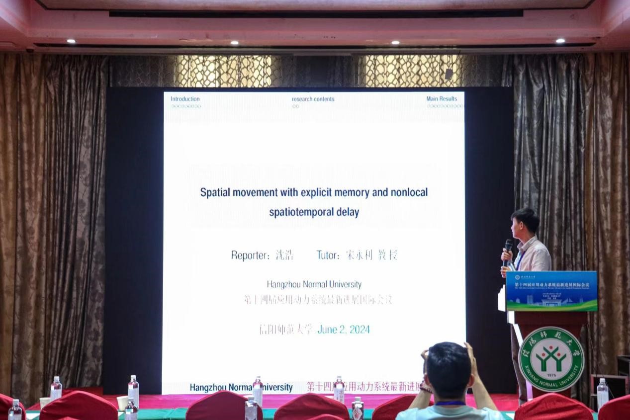 杭州师范大学的沈浩,做了题目为《 Spatial movement with explicit memory and nonlocal spatiotemporal delay》的报告。