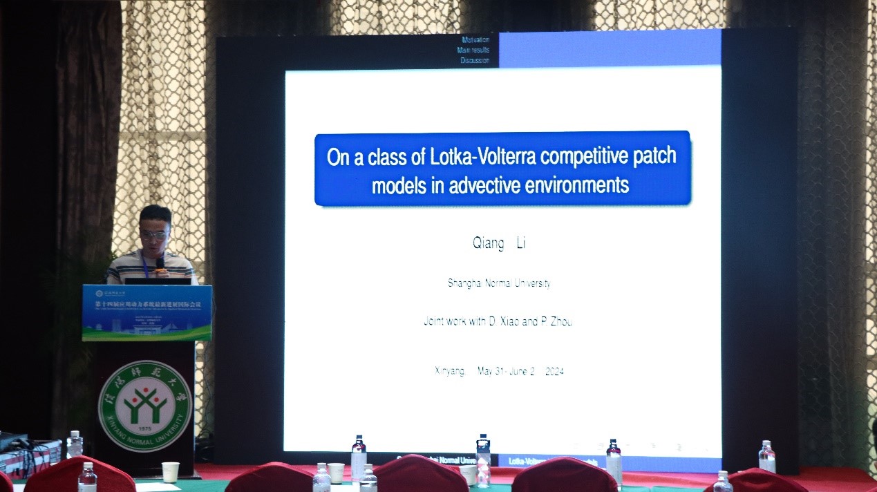 上海师范大学的李强,做了题目为《On a class of Lotka-Volterra competitive patch models in advective environments》的报告。