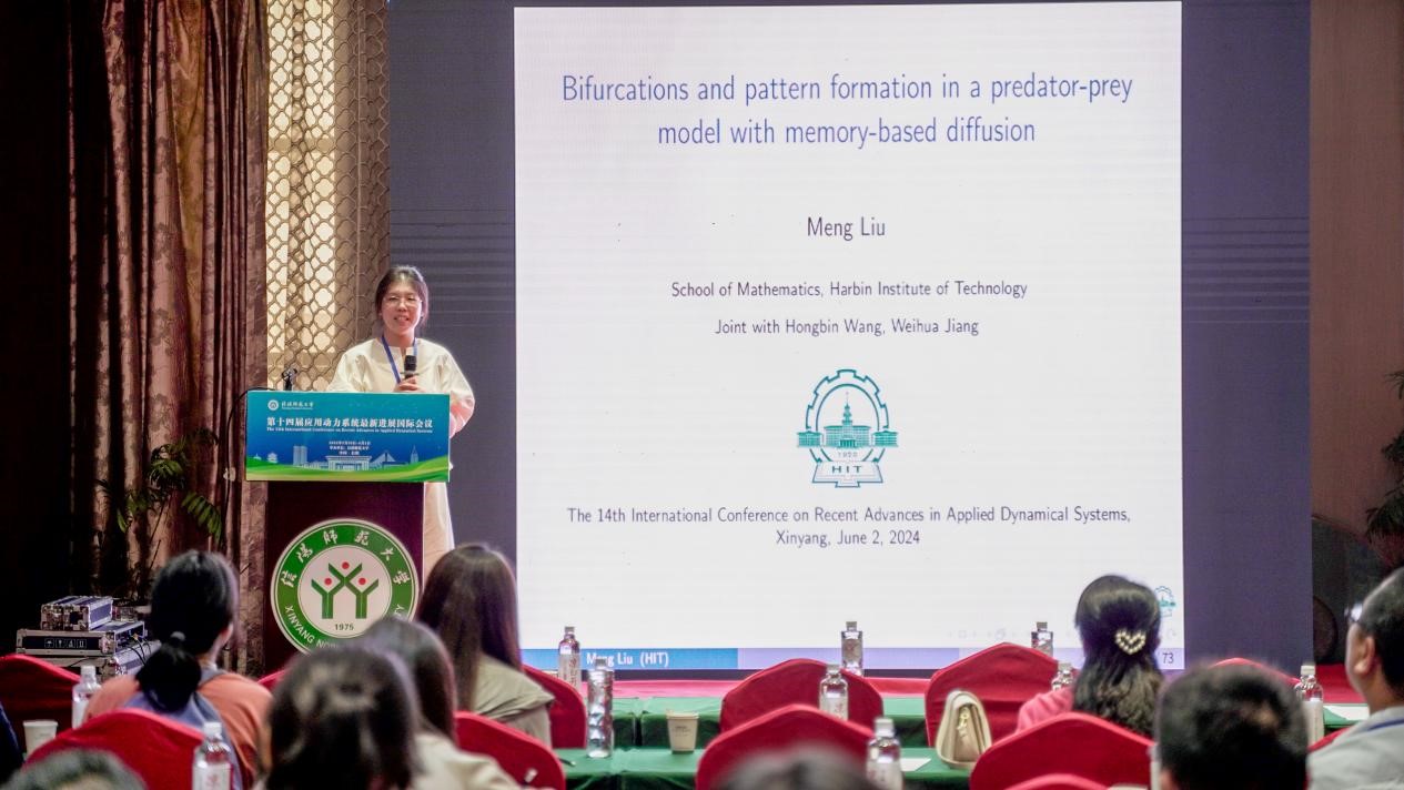 哈尔滨工业大学的刘蒙,做了题目为《Bifurcations and pattern formation in a predator-prey model with memory-based diffusion》的报告。