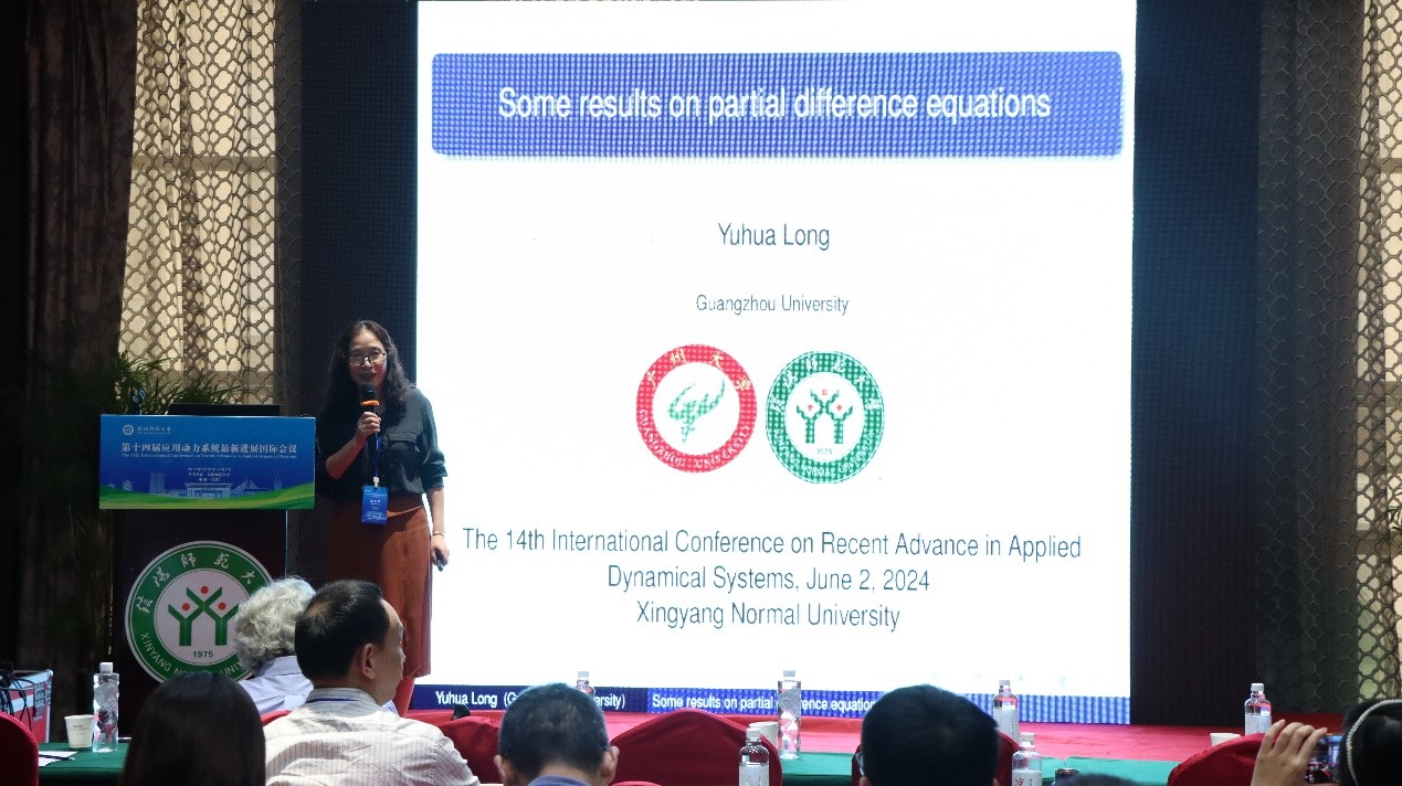广州大学的龙玉华,做了题目为《Some results on partial difference equations》的报告。