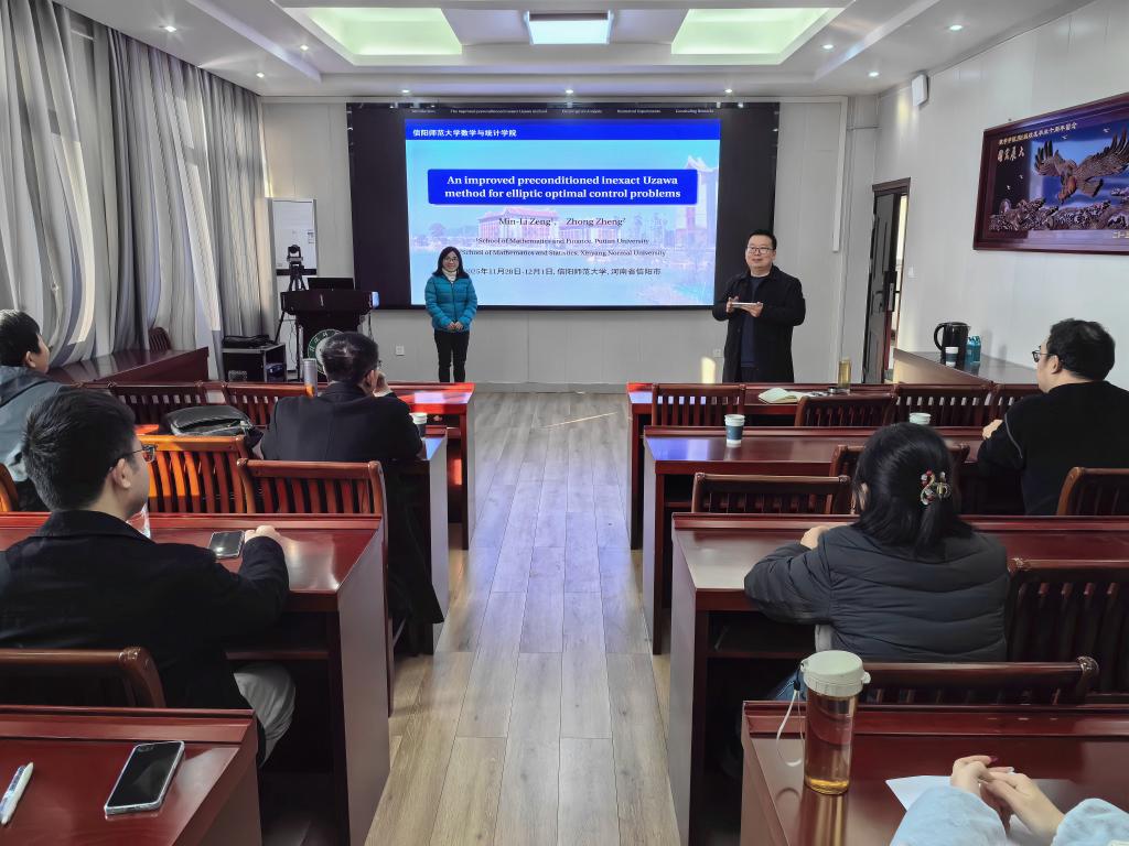 11月29日上午,应英国上市公司365邀请,莆田学院曾闽丽教授在数学楼315会议室为公司师生做了题为《求解椭圆型最优控制问题的改进预处理非精确Uzawa方法》的学术报告,报告由李世顺教授主持,部分教师和研究生聆听了此次报告。