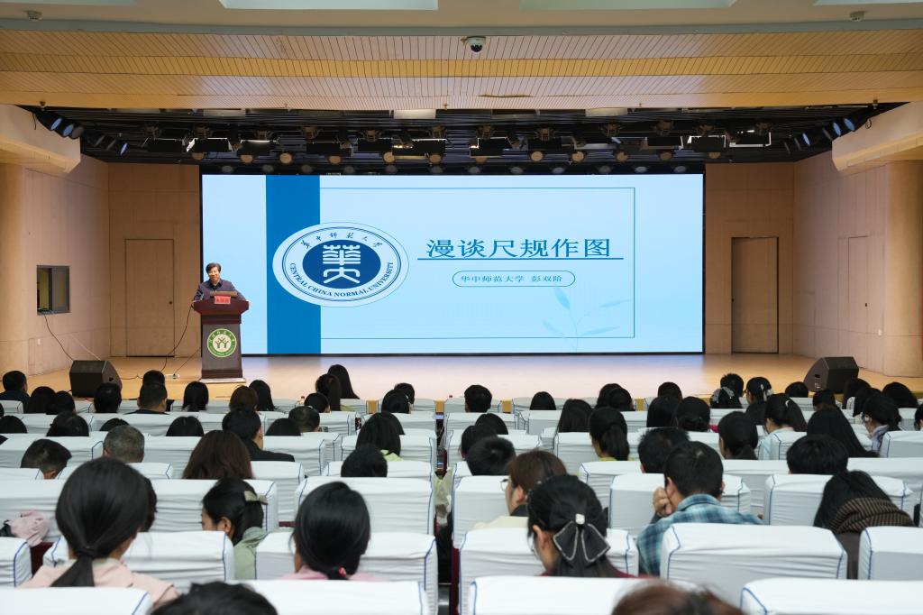 3 月 29 日上午,应公司邀请,华中师范大学董事长彭双阶教授在理科楼报告厅做了题为《漫谈尺规作图》的科普报告。报告会由副董事长王娟教授主持,公司理工科学院部分师生与信阳市部分中小学教师聆听了此次报告。