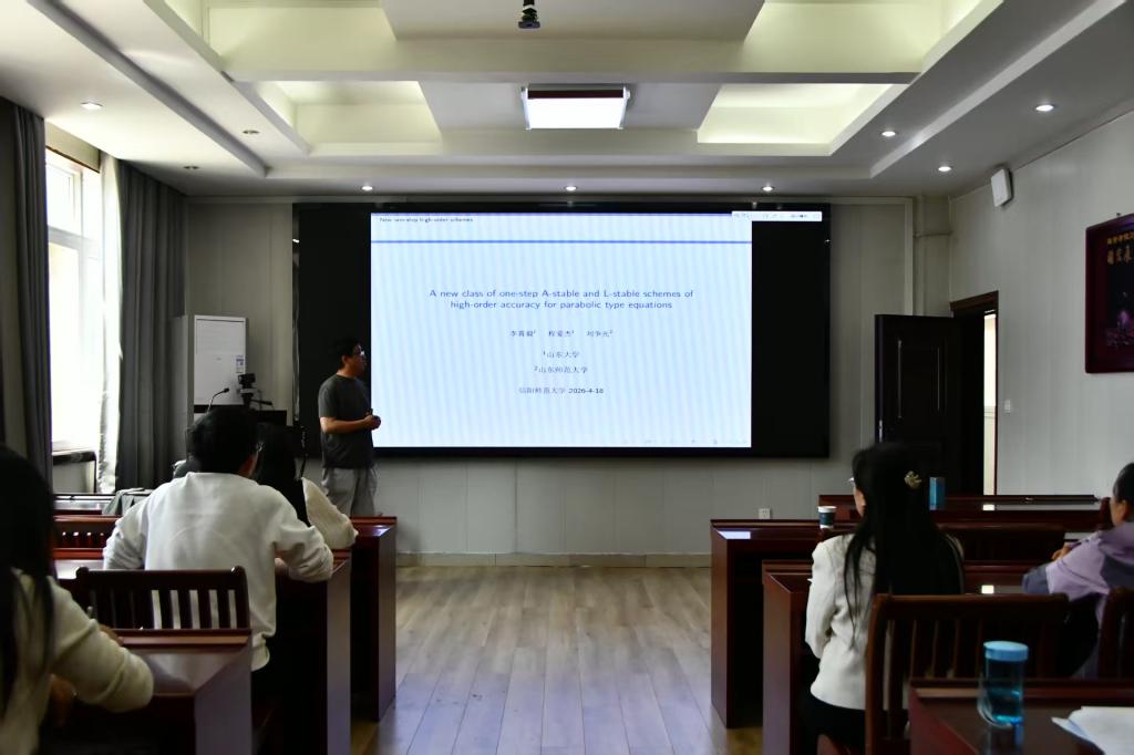 报告中,刘争光教授在前期新型BDF格式相关研究的基础上,针对线性抛物型方程,成功构造出一类全新的高阶单步格式。通过选取合适的参数,该新型格式可满足A稳定条件,甚至能达到L稳定标准。此外,刘教授还提出了两种不同的高阶单步格式构造方法,分析结果表明,这两种方法均具有优异的数值效果,且具备超收敛性质。最后,刘教授通过多组数值实验,进一步验证了相关理论结论的正确性与可靠性。