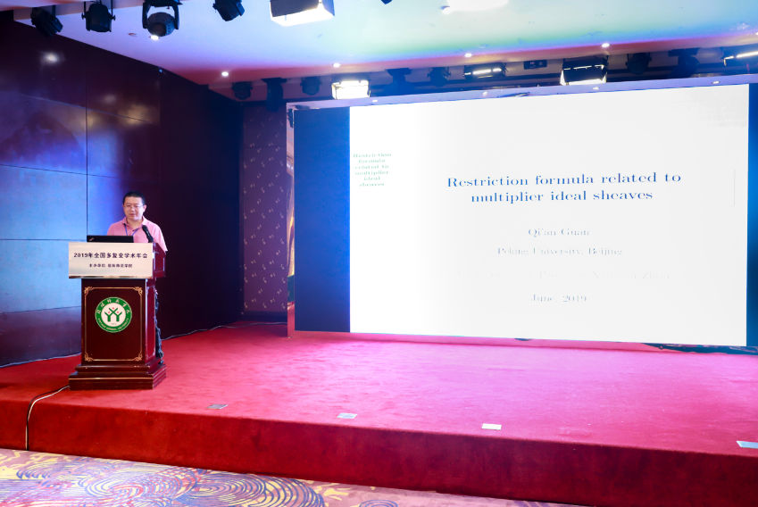 8月21日上午,下半场的报告由北京师范大学郑学安教授主持。 北京大学关启安教授,作了题目为《Restriction formula and subadditivity property related to multiplier ideal sheaves》的报告。他主要给出跳跃数的一个限制公式和极值情形的一些必要条件和应用。