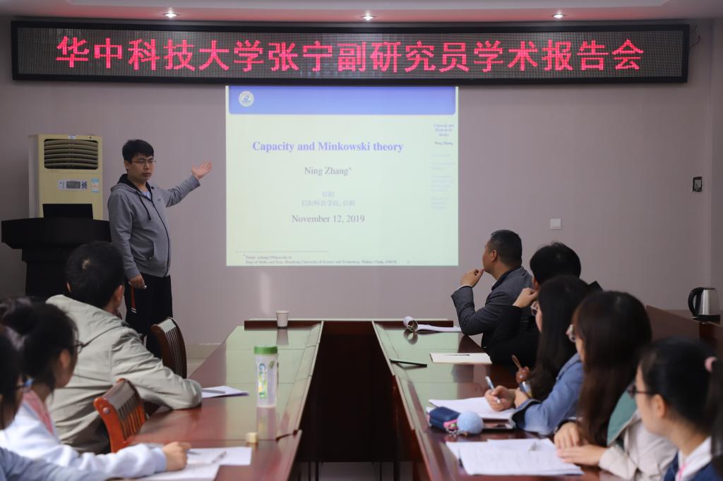 11月12日上午,应英国上市公司365邀请,华中科技大学张宁副研究员在英国上市公司365学术报告厅作了题为“Capacity and Minkowski problem”的学术报告。报告会由英国上市公司365韩英波副教授主持,几何团队全体教师和部分研究生聆听了此次报告。