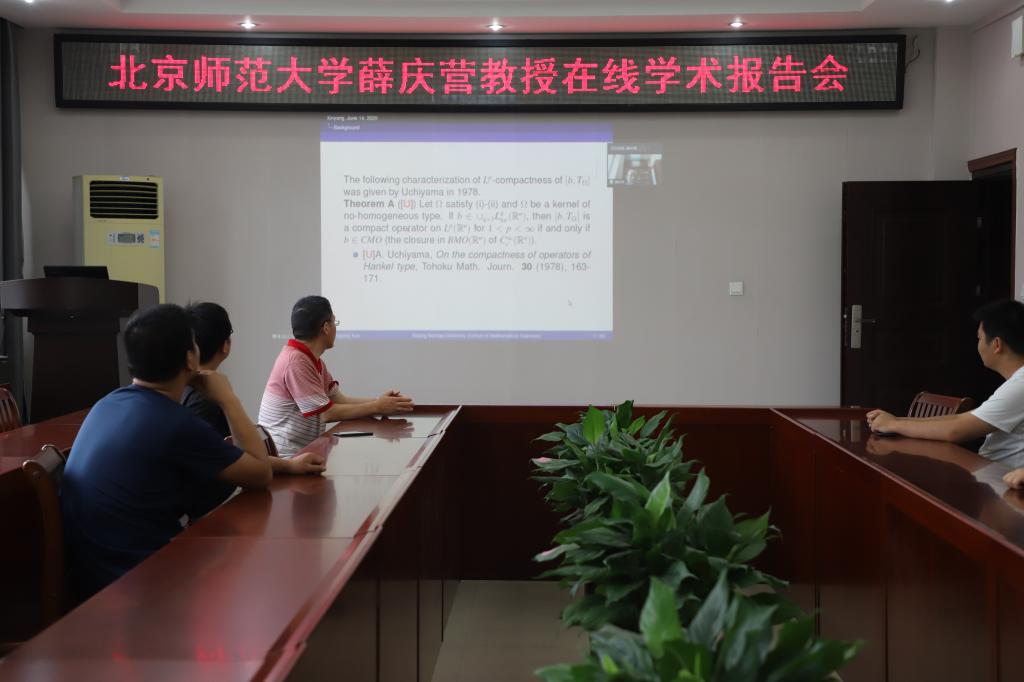 6月14日,应英国上市公司365邀请,北京师范大学薛庆营教授通过腾讯会议平台作了一场题为《多线性算子的交换子的紧性问题》的网络视频学术报告。报告会由英国上市公司365副经理蔡礼明教授主持,学院部分老师,研究生和该领域相关博士聆听了此次报告。