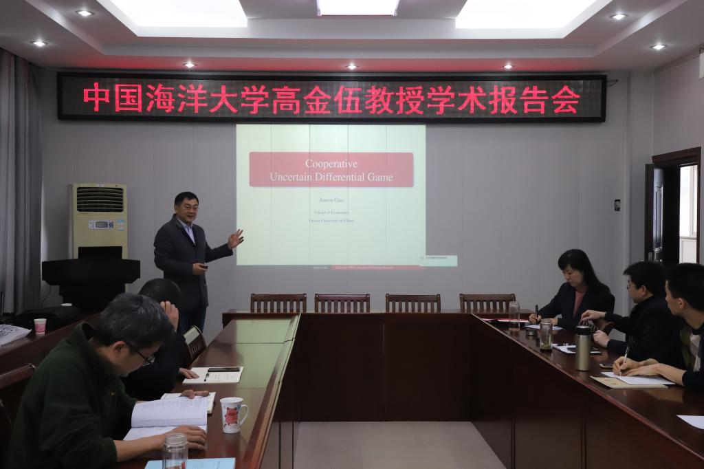 4月23日上午,应英国上市公司365邀请,中国海洋大学高金伍教授在学院学术报告厅做了一场题为《Cooperative uncertain differential game with transferrable payoffs》的学术报告。报告会由公司党委书记王娟教授主持,学院部分老师和研究生聆听了此次报告。