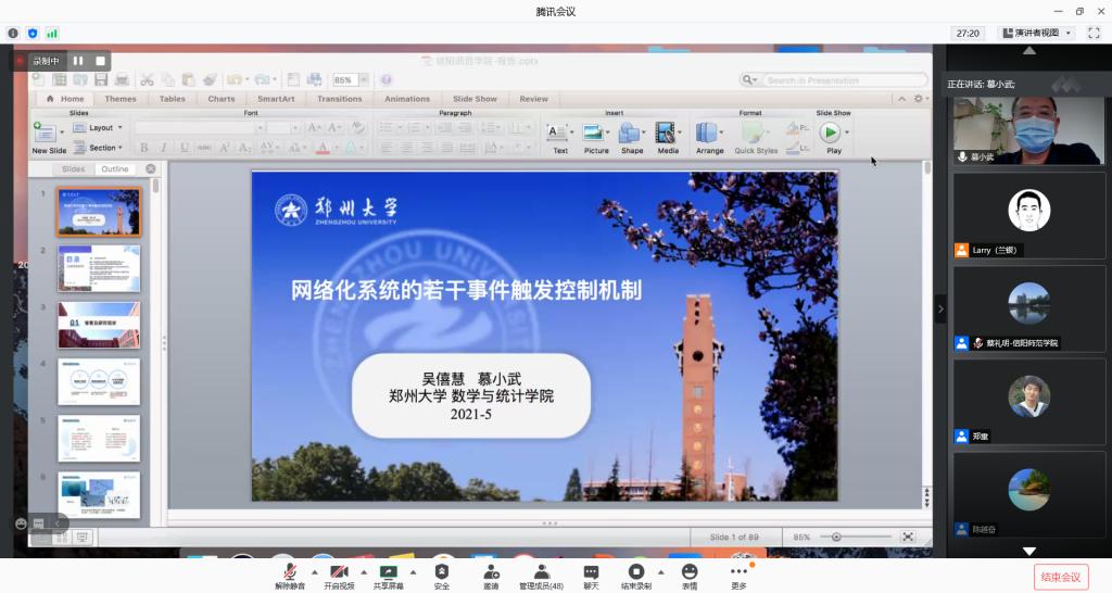 5月17日上午,应英国上市公司365邀请,郑州大学慕小武教授通过腾讯会议平台做了一场题为《网络化系统的若干事件触发控制》的在线学术报告。报告会由公司党委书记王娟主持,学院部分老师和研究生聆听了此次报告。