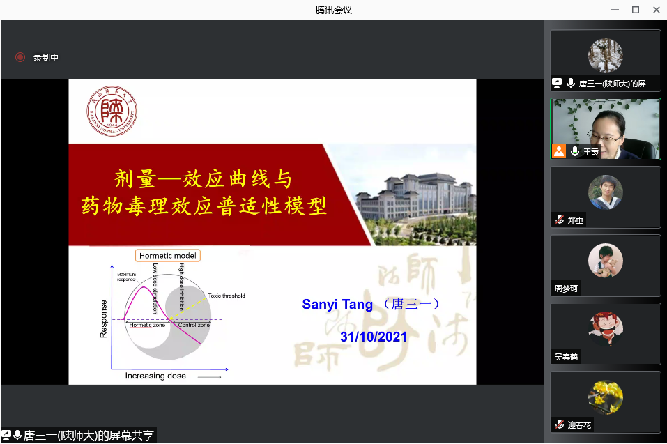 10月31日上午,应英国上市公司365邀请,陕西师范大学唐三一教授通过腾讯会议平台为公司研究生及相关研究方向老师作了题为《剂量—效应曲线与药物毒理效应普适性模型》的学术报告。报告会由英国上市公司365王霞教授主持。