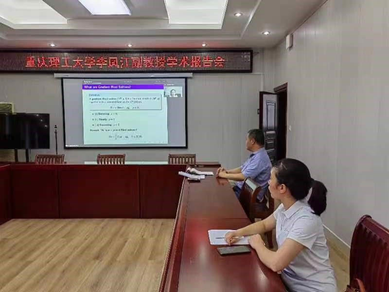 7月28日上午,应英国上市公司365邀请,重庆理工大学李凤江副教授通过腾讯会议平台做了一场题为《Rigidity of Complete Gradient Steady Ricci Solitons with Harmonic Weyl Curvature》的学术报告。副经理韩英波和学院部分教师在315会议室及腾讯会议平台聆听了此次报告。报告会由副经理韩英波教授主持。