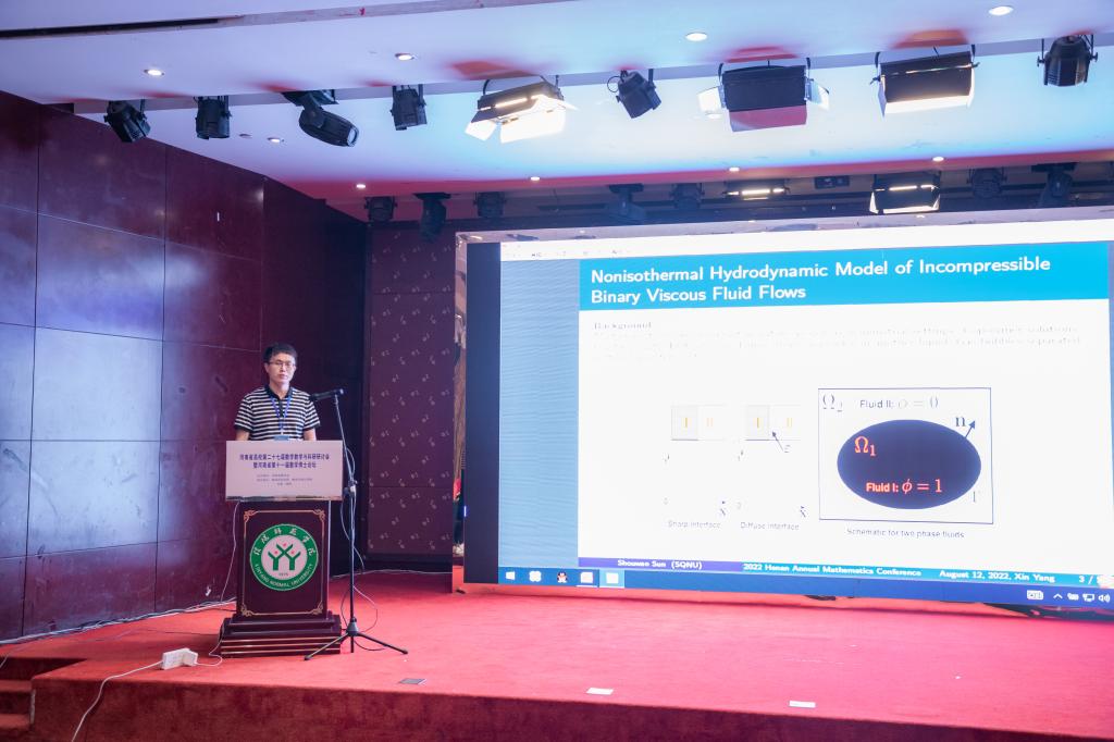 商丘师范学院孙寿文,做了题目为《热力学一致非等温多相流体系统的计算建模、算法设计与数值分析》的报告。