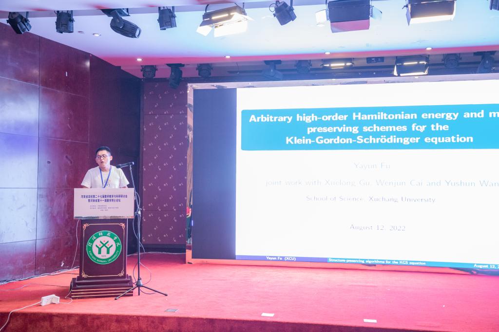 许昌学院付亚运,做了题目为《Arbitrary high-order mass and energy preserving schemes for the Klein-Gordon-Schrodinger equations》的报告。