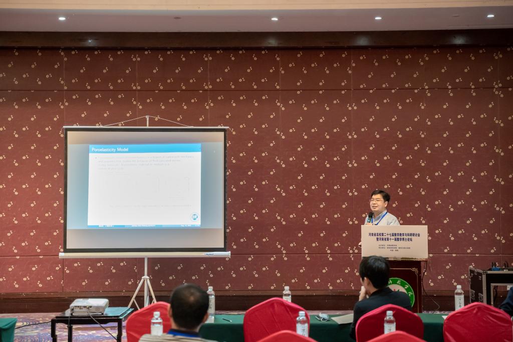 河南大学葛志昊教授做了题目为《Multiphysics finite element method for nonlinear poroelasticity》的报告。