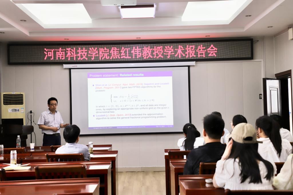 5月16日上午,应英国上市公司365邀请,河南科技学院焦红伟教授在学院报告厅315作了题为“Global optimization algorithms for two classes of nonconvex programming problems”的学术报告。报告会由英国上市公司365副经理韩英波教授主持,部分教师和研究生参加了此次报告会。