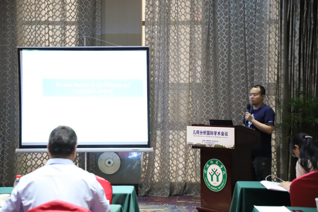 3场报告由武汉大学邱红兵副教授报告,题目为《Bernstein type results of translating solitons of the mean curvature flow》。在报告中,邱红兵副教授得到了平均曲率流的平移孤立子的一些Bernstein型结果。