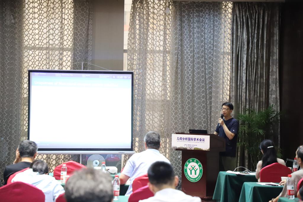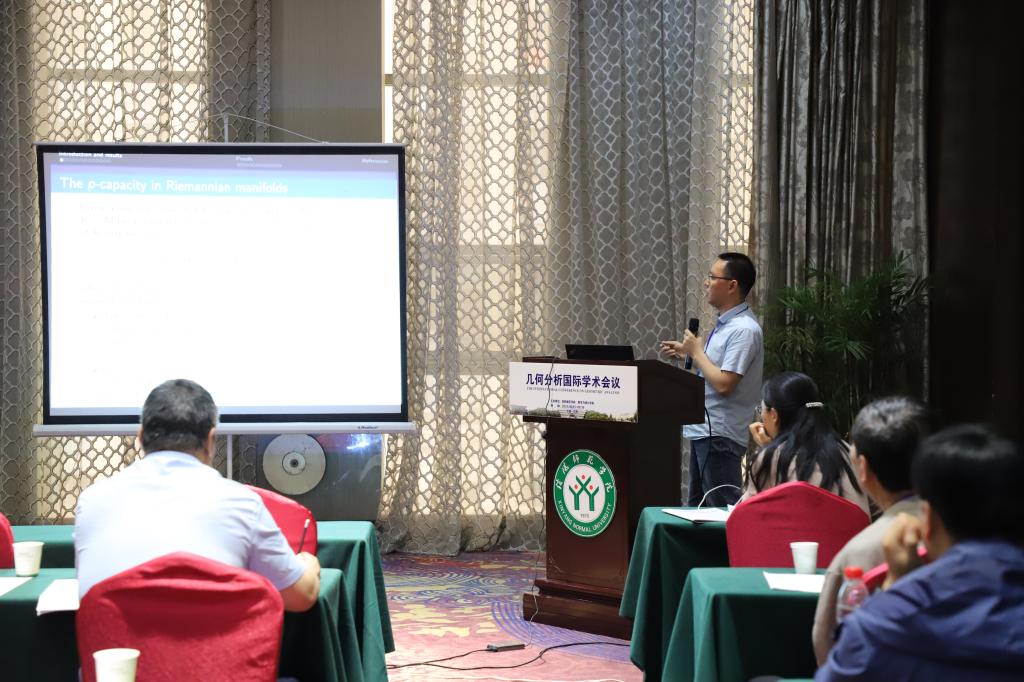 2场报告由四川大学熊昌伟教授报告,题目为《Sharp upper bounds for the capacity in the hyperbolic and Euclidean spaces》。在报告中,熊昌伟教授利用逆平均曲率流的工具得到欧式空间和双曲空间上光滑紧集的容积的各种最优上界估计。