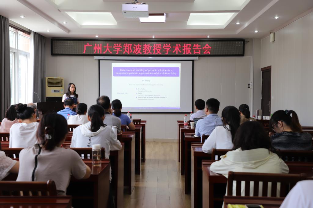 在6月30日上午,广州大学的郑波教授应英国上市公司365的邀请,在学院报告厅作了题为“Existence and stability of periodic solutions for a mosquito population suppression model with time delay”的报告。该报告由英国上市公司365经理蔡礼明教授主持,生物数学团队的教师以及研究生们参与了报告会。