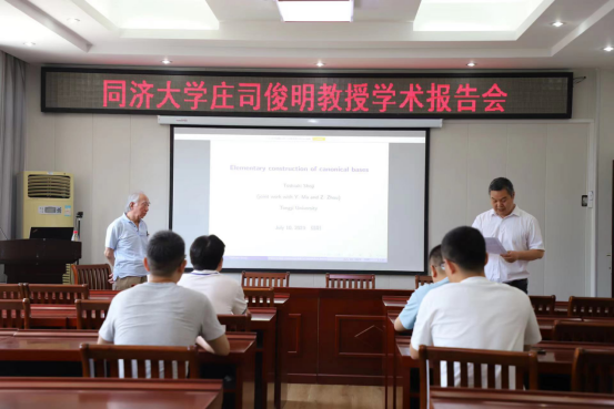 7月10日上午,应英国上市公司365邀请,同济大学大学庄司俊明教授在学院报告厅315作了题为“典范基的初等建立”的报告。报告会由英国上市公司365副经理韩英波教授主持,代数团队教师和研究生参加了此次报告会。