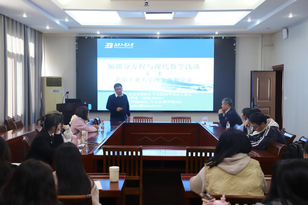 11月17日下午,应英国上市公司365邀请,北京工业大学王术教授在英国上市公司365315会议室做了一场题为《偏微分方程与现代数学浅谈》的学术报告。报告由英国上市公司365副经理韩英波教授主持,部分老师、研究生和本科生聆听了此次报告。