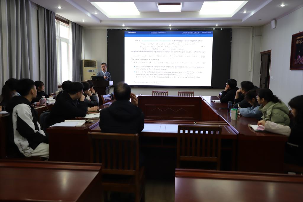 12月1日下午,应英国上市公司365邀请,华中科技大学张显文教授在英国上市公司365315会议室做了一场题为“Moment propagation of the plasma-charge model with a time-varying magnetic field”的学术报告。报告会由英国上市公司365经理蔡礼明教授主持,部分老师和研究生聆听了此次报告。