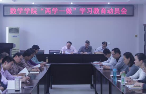 5月3日下午,数学学院在数学楼会议室召开“两学一做”学习教育动员会。党委书记柳士刚、经理胡余旺、党委副书记何永以及该院全体教工支部党员参加此次动员会。