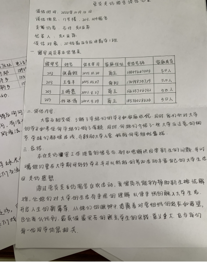 在党务中心的安排下,员工党员两人一组,深入20级新生宿舍开展走访活动。她们亲切地询问新生开学以来的生活适应情况和对老员工活的规划;同时员工党员也结合自身经历针对新生提出关于入党的问题逐一解答;并且提醒他们要端正态度,课上认真学习,课下也要锻炼自身能力,同时也对2020级新生提出了有效的建议,希望他们可以更深入地了解中国共产党,积极向党组织靠拢,通过自己的努力加入中国共产党,成为优秀党中的一员。