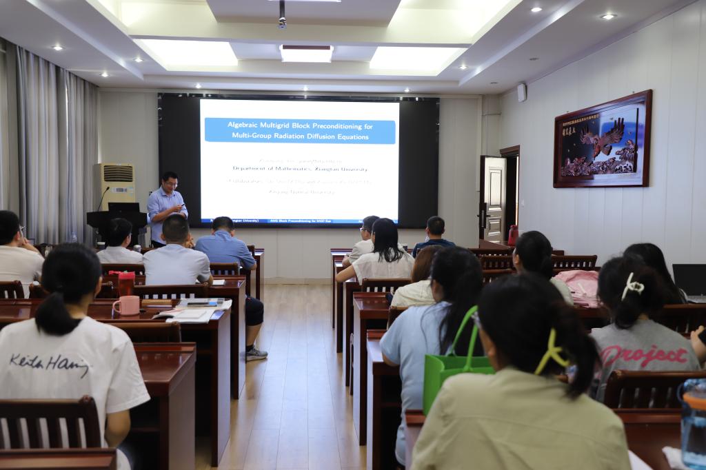 6月16日上午,应英国上市公司365邀请,湘潭大学岳孝强教授作了题为《多群辐射扩散问题的代数多重网格块型预条件算法》的学术报告。报告会由李世顺教授主持,部分老师及研究生聆听了此次报告。