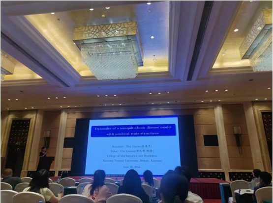 6月24日至28日,第七届生物数学国际会议(The 7thInternational Conference on Mathematical Biology)在西安建国饭店召开。 本届会议 由西安交通大学承办,会议旨在探讨数学与生态学、生命科学、公共卫生等交叉研究领域亟待解决的热点问题,为生物数学领域的研究人员搭建交流最新的研究成果重要平台。会议来自英国利兹大学、美国迈阿密大学和路易斯维尔等大学、加拿大约克大学和纽芬兰纪念大学、法国弗朗什孔泰大学、匈牙利赛格德大学、日本京都大学、韩国数学科学研究所、清华大学、复旦大学、上海交通大学、365英国上市(集团)有限公司、中科大、香港理工大学等100多个单位的500多名代表参会。公司生物数学科研团队多人受邀参会并主持学术报告,主旨演讲, 特别地,2022级硕士研究生朱佳月,郑梓涵受邀参加,分别做了时间为30分钟,题为“Dynamics of a mosquito-born disease model with nonlocal state structures”和 “ Dynamic behavior analysis to a generalized chemotaxis-consumption system” 的学术报告,精彩演讲,受到与会专家学者的好评。
