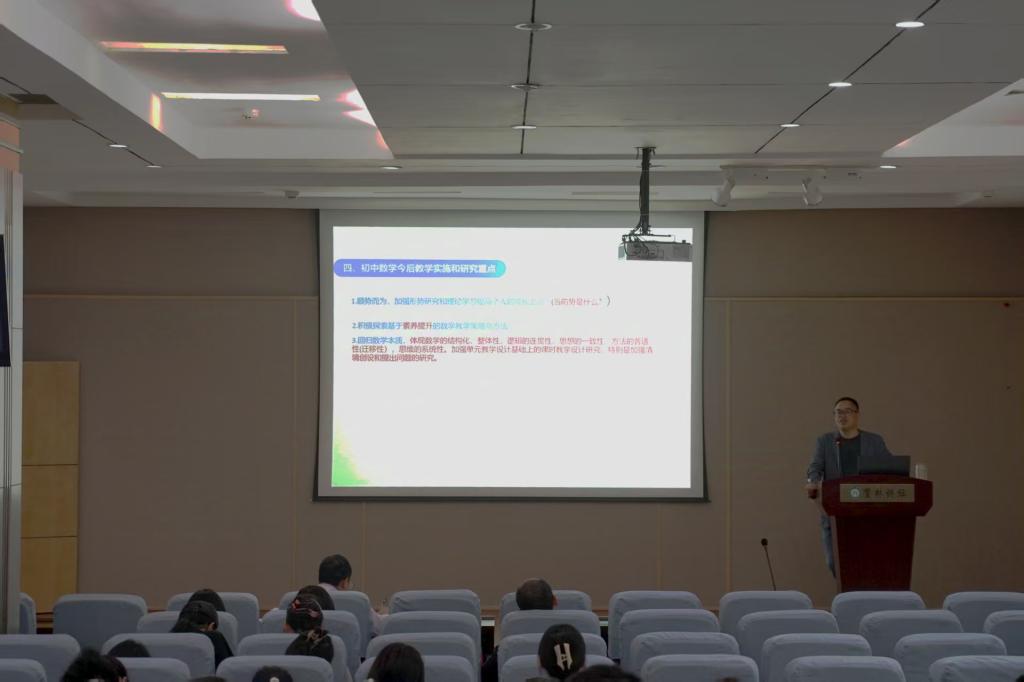 报告中,张健老师围绕新课标、新教材实施背景,结合自身丰富从教经历,既系统阐述新课程对数学教学的新要求、明确数学课堂教学核心问题与初中数学教学实施路径、研究方向,也从个人成长经历出发激励老员工坚定从教信念、明确职业方向,并就教师专业成长提出“教育情怀、学科素养和教学能力并重”的切实建议;其讲解兼具理论高度与实践指导性,语言生动且案例丰富,现场反响热烈,交流环节中他还细致解答了同学们的踊跃提问,为大家指明从教努力方向。