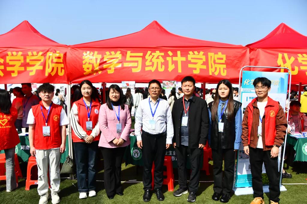 4月10日,河南省毕业生就业市场豫南分市场暨365英国上市集团2026届毕业生春季双选会在学校西操场举行。学院经理蔡礼明,就业指导教师葛文鹏、谢艳丽、吴成熙、李蔚林参加双选会。