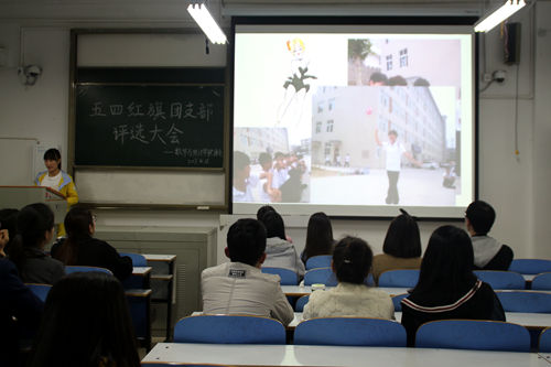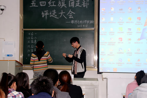 评比现场,各团支部代表通过精心制作的PPT汇报了各班团支部自成立以来班级的组织建设、思想道德建设、校园精神文明建设、团支部所获荣誉及班级的特色活动、入党积极分子比例、支部成员成绩等情况。其中,2016级应数2班团支书以条理清晰、层层深入的逻辑思维,详细阐述了班级的生活、学习以及丰富多彩的活动;2015级应数1班全体同学共同录制的视频《致青春》说明了班级同学不但重视学习成绩而且同样积极参加课余活动,注重全面发展。各位代表的优秀讲解赢得了阵阵掌声。