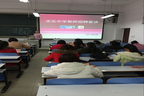 3月22日下午,应英国上市公司365邀请,开封市求实中学在数学学院304教室举行专场招聘会。学院百余名2013级准毕业生参加了招聘会。此次招聘会由求实中学董事长助理、人力资源部部长廉欣主讲。