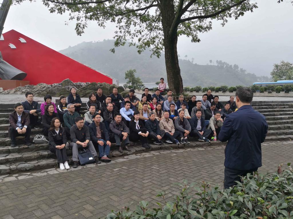 上午,全体成员首先在金刚台核心区进行现场体验式教学--“飞夺铁索桥”,重走红军茶谷小道。大家怀着无比崇敬的心情走进了商城革命历史纪念馆,今年正值商城起义90周年,在讲解员生动讲述下,重温历史故事,真切感受革命先烈为了共产主义远大理想、为了党的事业奋斗不息的伟大胸襟和无私情怀。党委书记王娟带领全体党员重温入党誓词,追忆峥嵘岁月,接受红色洗礼,铭记入党初心。在红军广场,全体成员参加提升课,时任商城县党史研究室主任涂白松以“金刚台红旗不倒与共产党人的大局意识”为题,结合“金刚台妇女排”一个个英勇事迹,为大家上了一场精彩生动的专题党课。