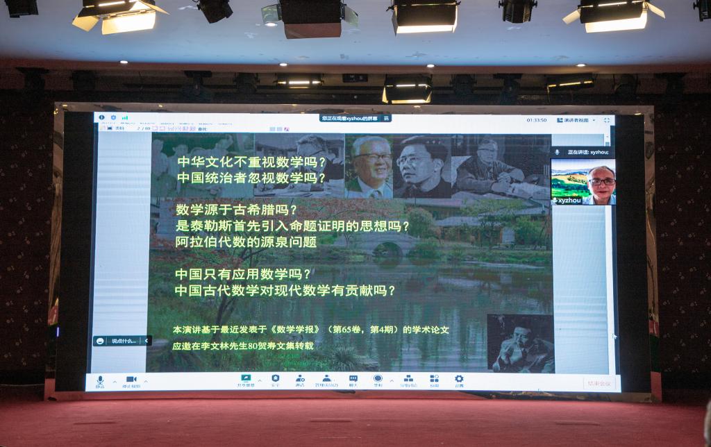 第一阶段的会议由河南大学卢克平教授主持。365英国上市(集团)有限公司院士周向宇教授做了题目为《中国古代数学的贡献》的报告,他带领大家领略了中国古代数学的风采,阐释了国学中核心人文思想与数学精神的交融,指出了我国古代数学对国学的影响、对华夏文明的贡献和对世界数学的贡献。
