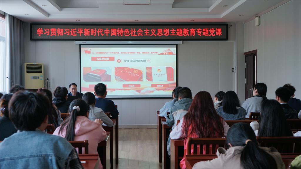 根据学校学习贯彻习近平新时代中国特色社会主义思想主题教育领导小组工作安排,结合我院实际,5月7日下午,学院在数学楼315会议室举行了以“深入学习贯彻党的二十大精神,争做堪当民族复兴重任的时代新人”为主题的党课活动。本次党课主讲为党委副书记刘丰铭,第三十九期党员发展对象培训班学员及部分员工党员代表参加本次活动。