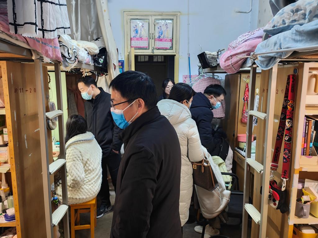 在巡查走访过程中,学院领导深入各个楼栋的员工宿舍,重点关注寝室安全隐患问题。他们还积极了解员工思想动态,关切员工身体和心理健康。对学习、生活、考研、就业等方面进行指导。随后,老师们与员工进行了深入交流,了解他们的学习、生活情况,鼓励他们坚定考研信心,缓解备考压力。最后,他们还针对员工反映的问题和建议,及时给予回应和解答。