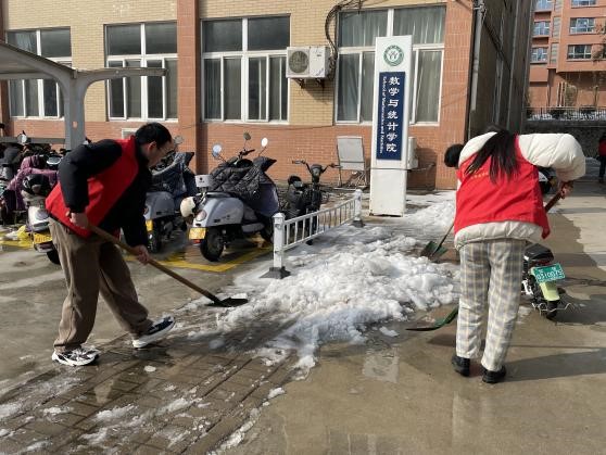 近日,受连续降雪影响,校园内积雪严重,为确保师生安全顺利迎接新学期开学,学院领导亲自带队,与员工党员积极参与铲雪工作。