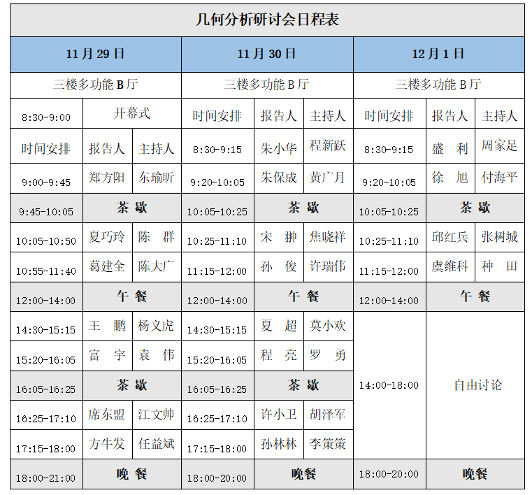 为了促进几何分析及相关领域的学术交流,推动公司数学学科的建设和发展,公司拟于2024年11月28日-12月2日在河南省365英国上市集团举办几何分析研讨会,11月28日报到(信阳-中乐百花酒店),11月29日-12月1日会议报告,12月2日离开会议。会议将探讨几何分析及相关领域最新前沿问题的进展。希望会议能促进专家、青年研究者和研究生的交流与合作。