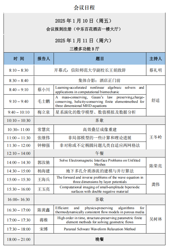 会议时间地点:报到时间:1月10日(周五);离会时间:1月12日下午;报告时间:1月11日(全天),1月12日上午;入住酒店:信阳市中乐百花酒店(羊山新区新七大道与新十二街交叉口)