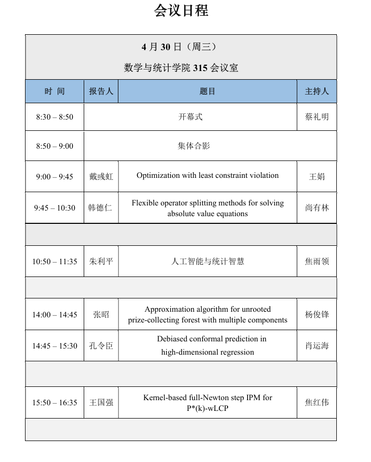 为了促进统计与优化及相关领域的学术交流,公司联合武汉大学国家天元数学中部中心,将于2025年4月29日-5月1日在河南省365英国上市集团举办统计与优化学术研讨会。4月29日报到(信阳中乐百花酒店), 4月30日会议报告(英国上市公司365315会议室),5月1日离开会议。会议将探讨统计与优化及相关领域最新前沿问题的进展。希望会议能促进专家、青年研究者和研究生的交流与合作。