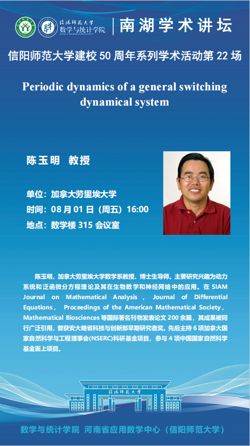 庆建校50周年之南湖讲坛:加拿大劳里埃大学陈玉明教授——Periodic dynamics of a general switching dynamical system