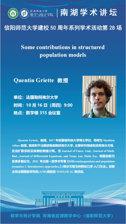 庆建校50周年之南湖讲坛:法国勒阿弗尔大学Quentin Griette教授——Some contributions in structured population models