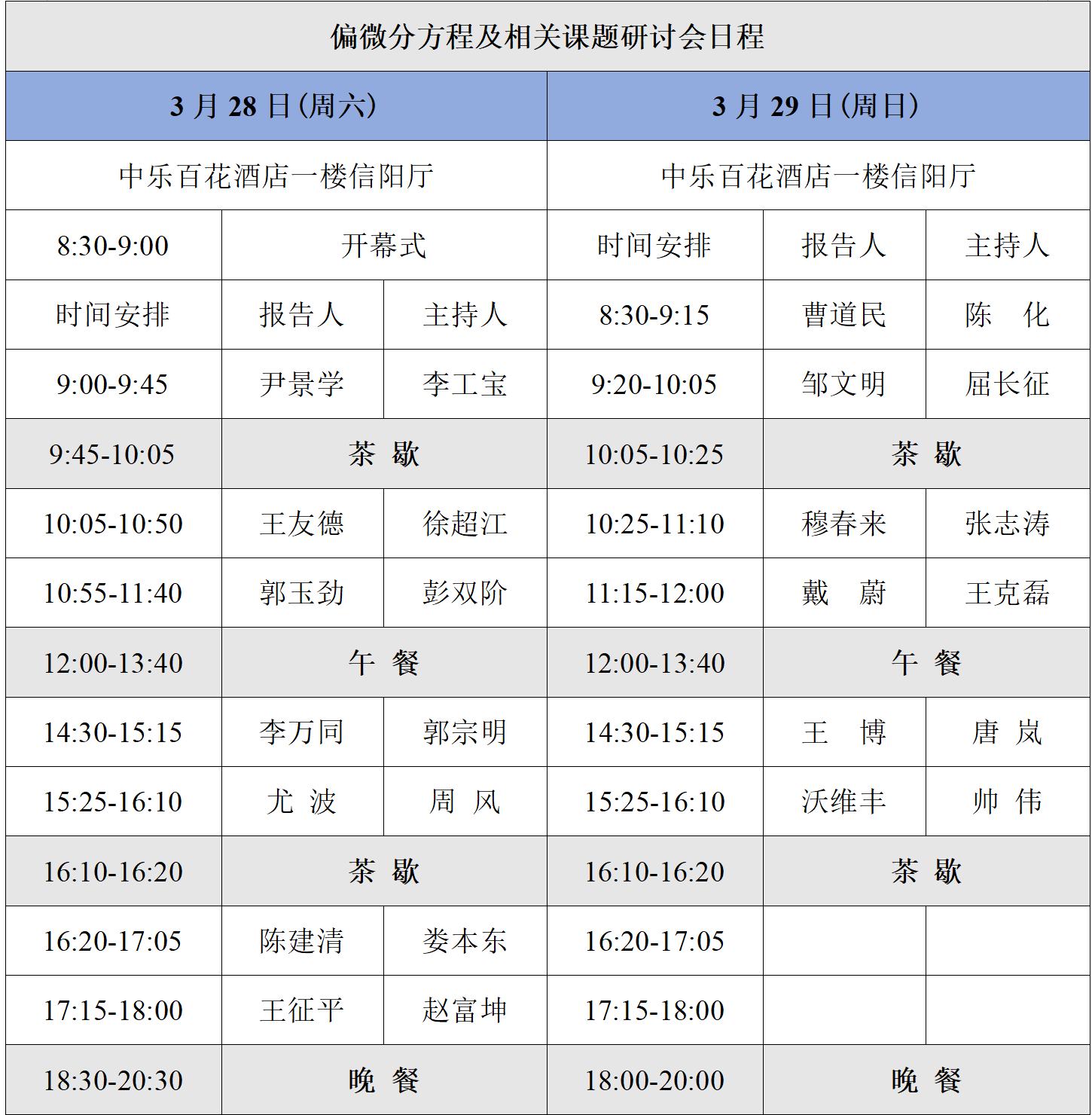 报到时间:3月27日,报告时间:3月28日-29日,离会时间:3月30日